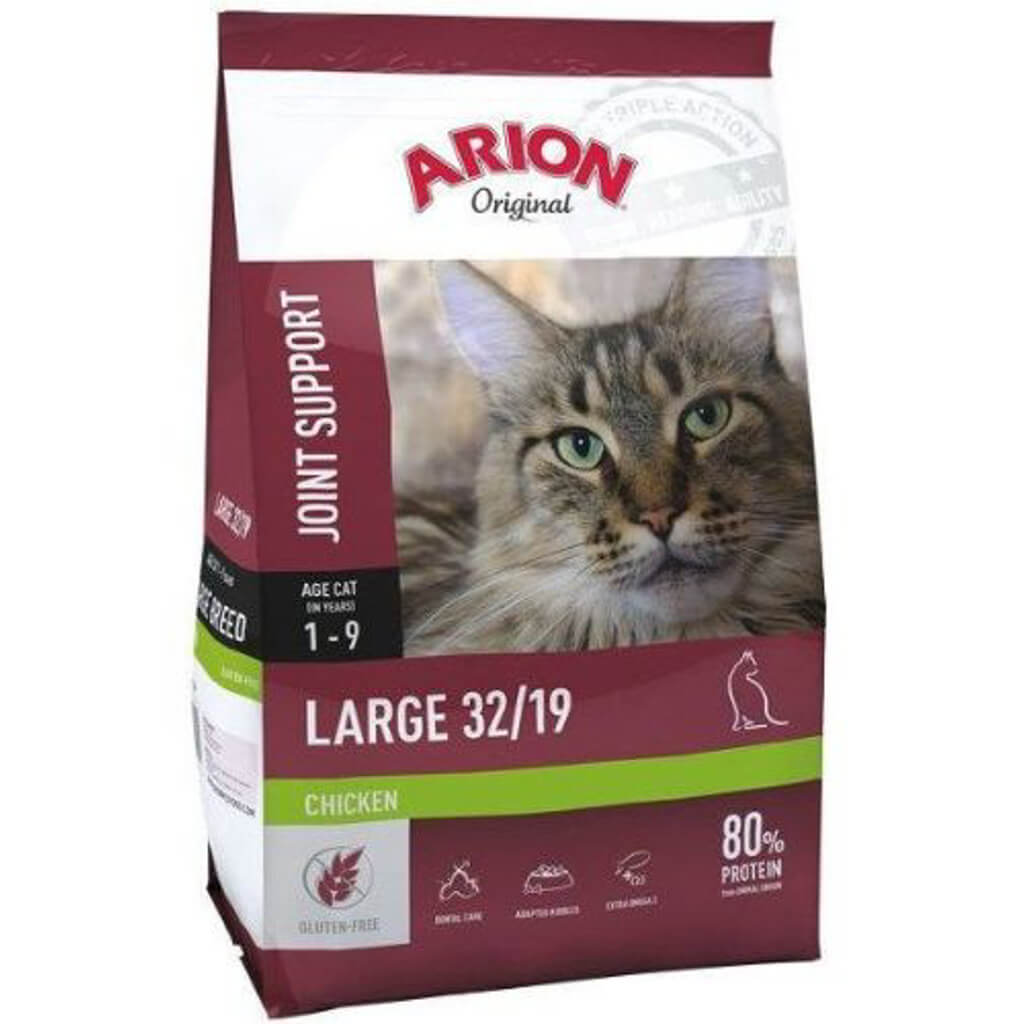 Arion Original Large Breed er udviklet til voksne store katteracer. Det er vigtigt at sørge, for at katten ikke får ledproblemer og derfor indeholder foderet chondrobeskyttende ingredi