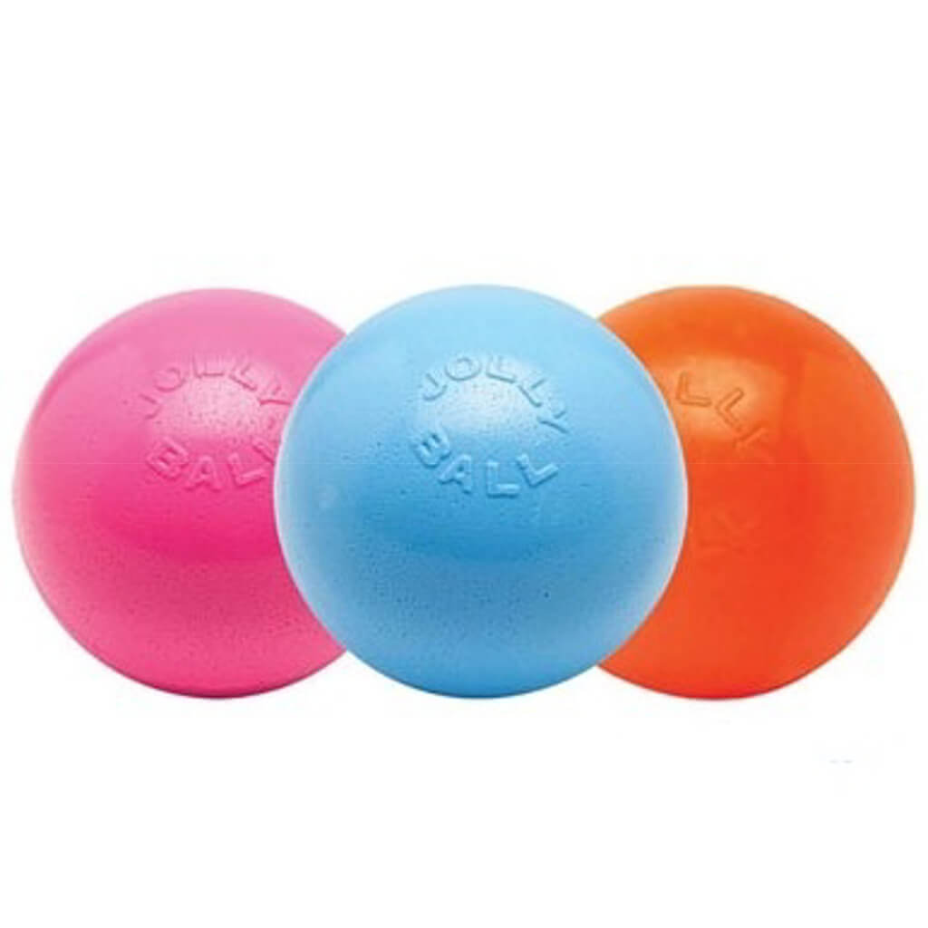 Denne Bounce-N-Play bold er halv hård og meget robust Bolden kan hoppe og kan holde til meget Når hunden bider i bolden vil dens tænder lave mærker i bolden, men den vil ikke punktere Produceret i ugiftige materialer Jolly Pets Small: Ø 11cm Medium: Ø 15c
