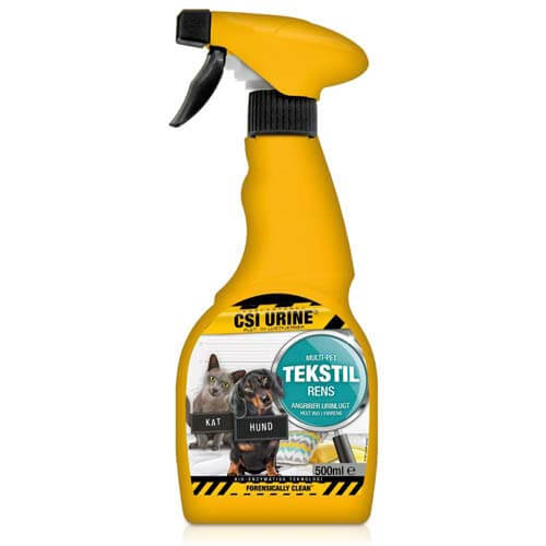 CSI Urine Tekstilrens renser ethvert “gerningssted” hvis dit kæledyr har haft et uheld. Undgå, at dit kæledyr bliver ved med at markere samme uønskede sted i hjemmet ve