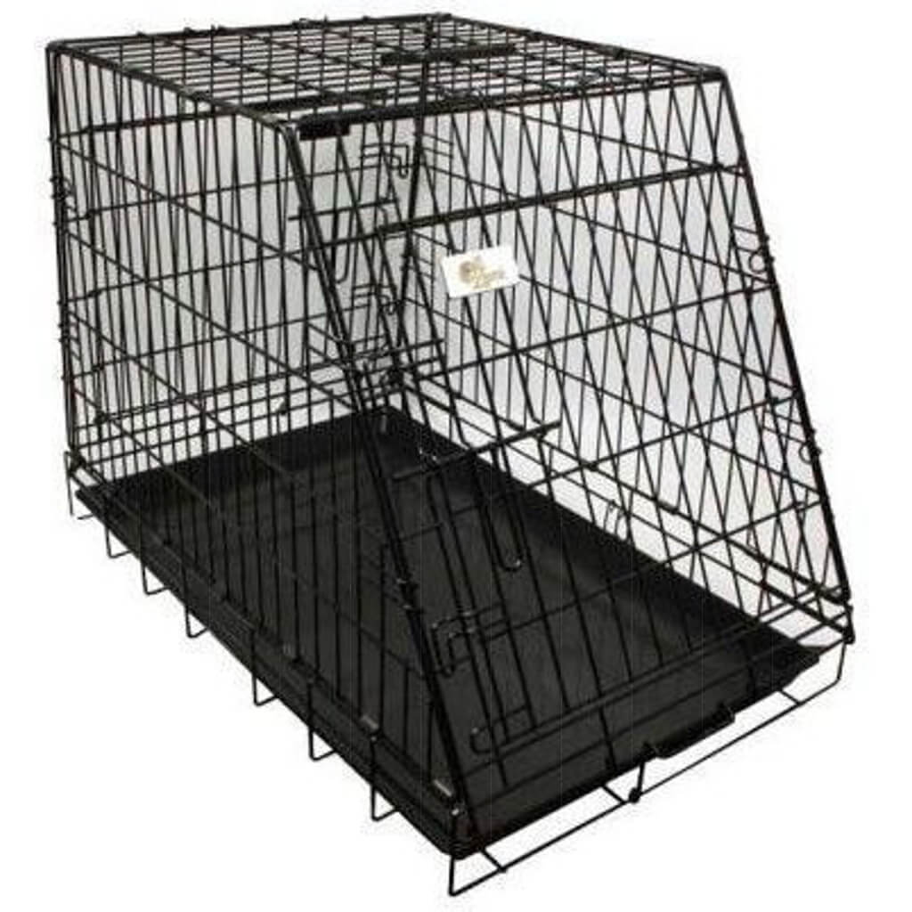 Hundetransportbur Skrå Kraftigt metalbur til bilen Kan anvendes når du skal på tur med dit kæledyr Buret kan slåes op og ned nemt Med håndtag så buret er nemt at bære Plastikbakke i bunden Denne model passer til mellem hunde Åbning i fronten L93 B57.5 H65