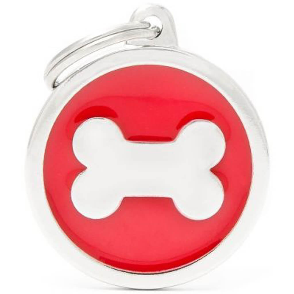 Hundetegn Classic Bone rød Big circle Kan graveres med 4 linjer på en side OBS: Max. 15 tegn pr. linje – HUSK at tælle tegnene! Prisen er incl. gravering på 1 side HUNDETEGN TAGES IKKE RETUR HUNDELOVEN§ 1. Besidderen af en hund skal sørge for, at hund