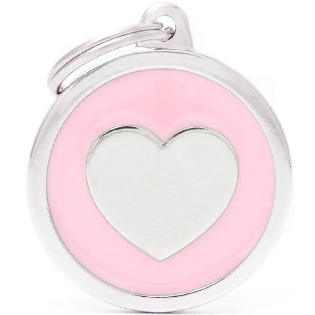 Hundetegn Classic Heart pink Big circle Kan graveres med 4 linjer på en side OBS: Max. 15 tegn pr. linje – HUSK at tælle tegnene! Prisen er incl. gravering på 1 side HUNDETEGN TAGES IKKE RETUR HUNDELOVEN§ 1. Besidderen af en hund skal sørge for, at hu