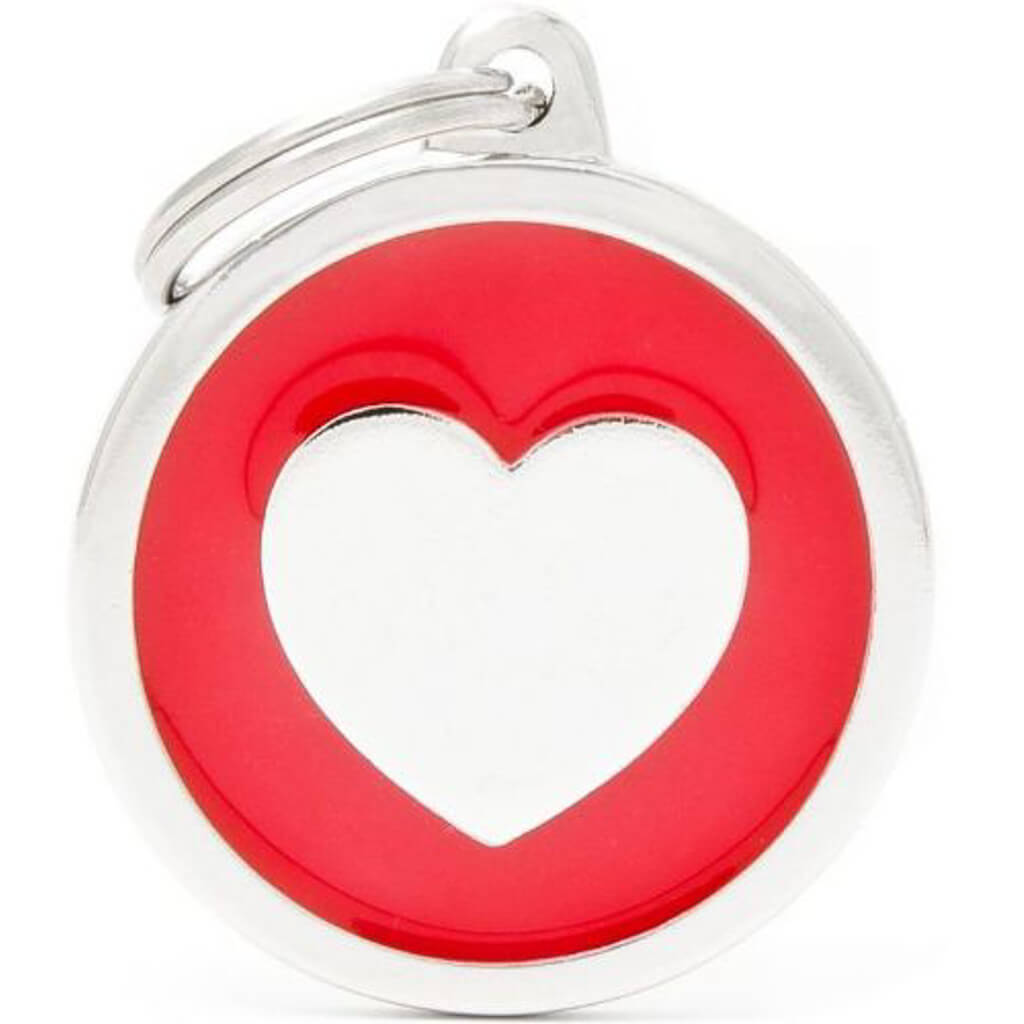 Hundetegn Classic Heart rød Big circle Kan graveres med 4 linjer på en side OBS: Max. 15 tegn pr. linje – HUSK at tælle tegnene! Prisen er incl. gravering på 1 side HUNDETEGN TAGES IKKE RETUR HUNDELOVEN§ 1. Besidderen af en hund skal sørge for, at hun