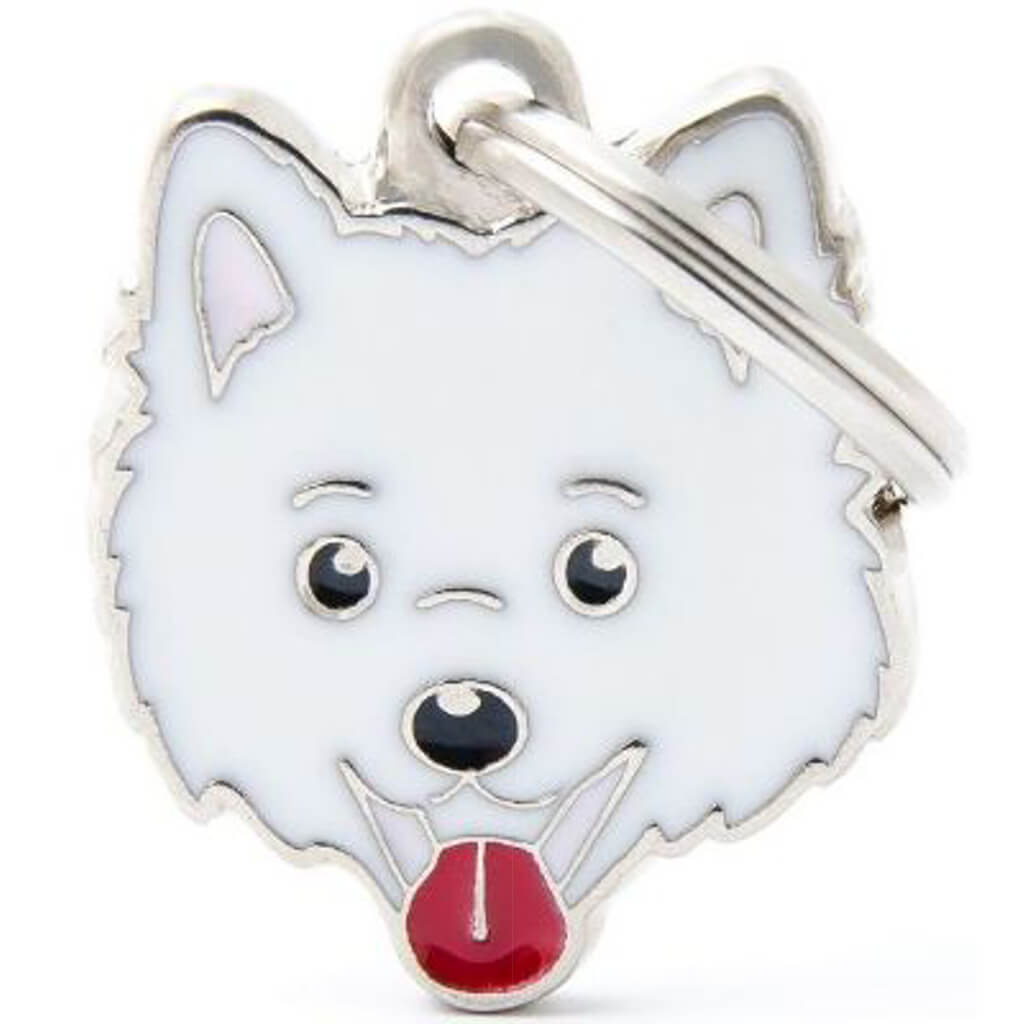 Hundetegn Friends Italian Spitz hvid Kan graveres med 3 linjer på en side OBS: Max. 15 tegn pr. linje – HUSK at tælle tegnene! Prisen er incl. gravering på 1 side HUNDETEGN TAGES IKKE RETUR HUNDELOVEN§ 1. Besidderen af en hund skal sørge for, at hunde