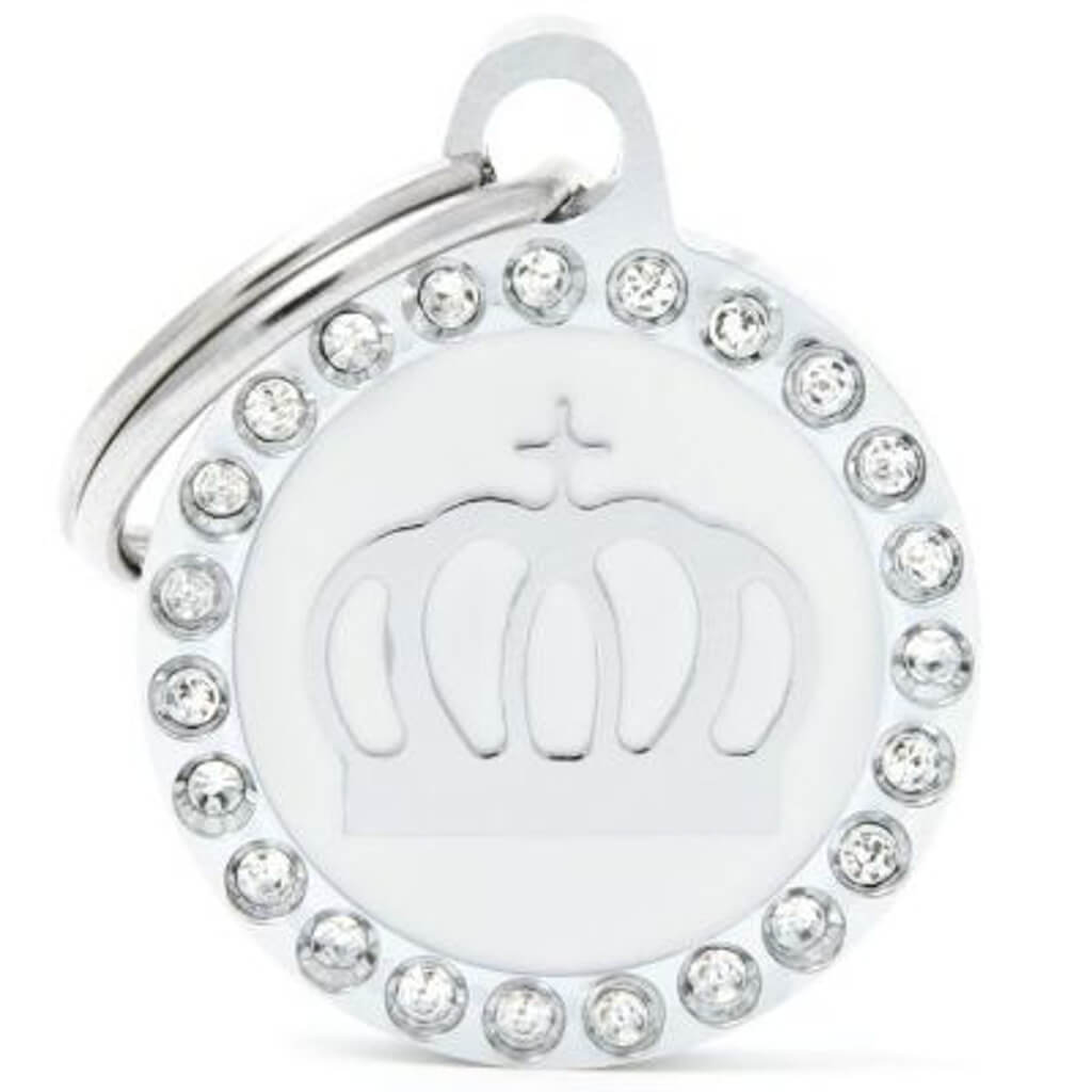Hundetegn Glam Crown hvid Small circle Kan graveres med 4 linjer på en side OBS: Max. 15 tegn pr. linje – HUSK at tælle tegnene! Prisen er incl. gravering på 1 side HUNDETEGN TAGES IKKE RETUR HUNDELOVEN§ 1. Besidderen af en hund skal sørge for, at hun