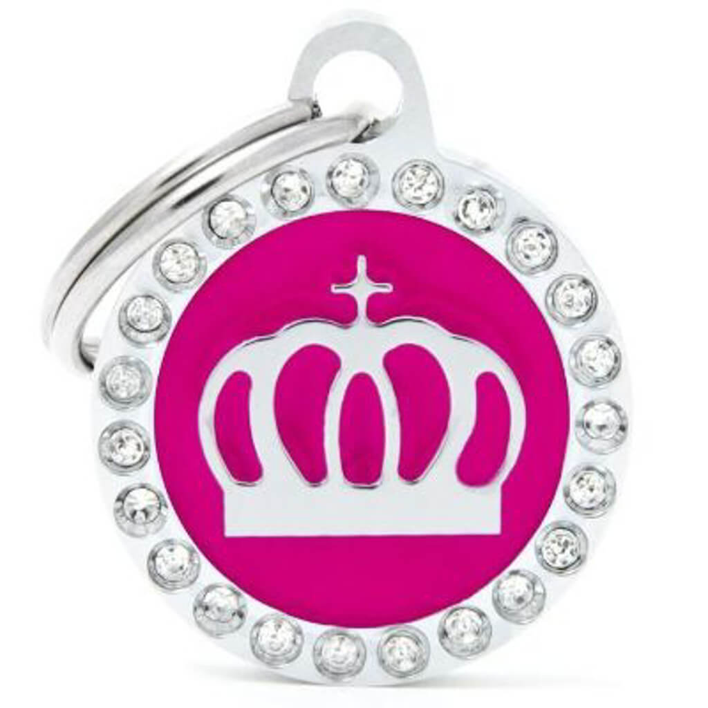 Hundetegn Glam Crown pink Small circle Kan graveres med 4 linjer på en side OBS: Max. 15 tegn pr. linje – HUSK at tælle tegnene! Prisen er incl. gravering på 1 side HUNDETEGN TAGES IKKE RETUR HUNDELOVEN§ 1. Besidderen af en hund skal sørge for, at hun