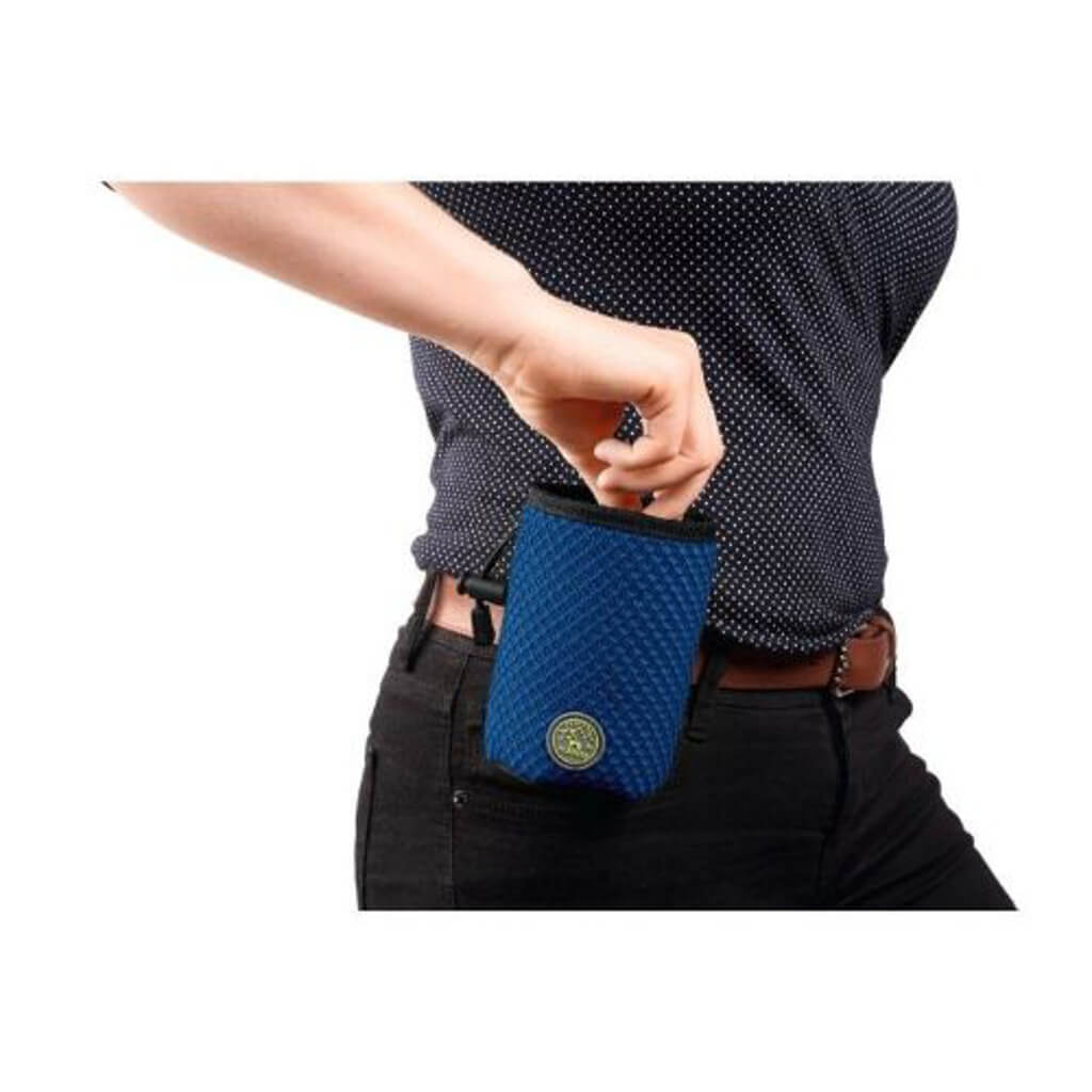 Hunter Hilo Godbidstaske Blå Ideelt til hundetræning Implementeret klips til at fæstne tasken på tøjet eller i bæltet Lukkes ved at hive i snoren Vaskbart foer Størrelse: Ca. H 15 cm x B 13 cm Polyester Blå Godbidstasken er ideel til træning, eller bare t