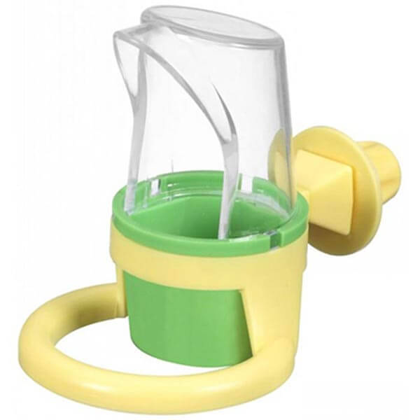 Denne beholder til van og foder er designet til nem fastgørelse i ethvert fuglebur. Den kan hurtigt fjernes og genopfyldes, hvilket sikrer din fugl en konstant ren forsyning af mad eller vand. Den gennemsigtige hætte holder snavs inde i buret uden at