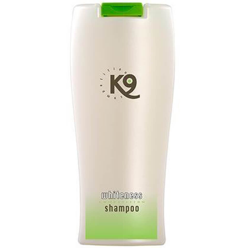 Er din hunds eller kats hvide pels blevet mat, gullig eller misfarvet? K9 Whiteness Shampoo er udviklet til skånsomt at genopfriske og fremhæve hvid og lys pels helt uden blegemidler! Den f