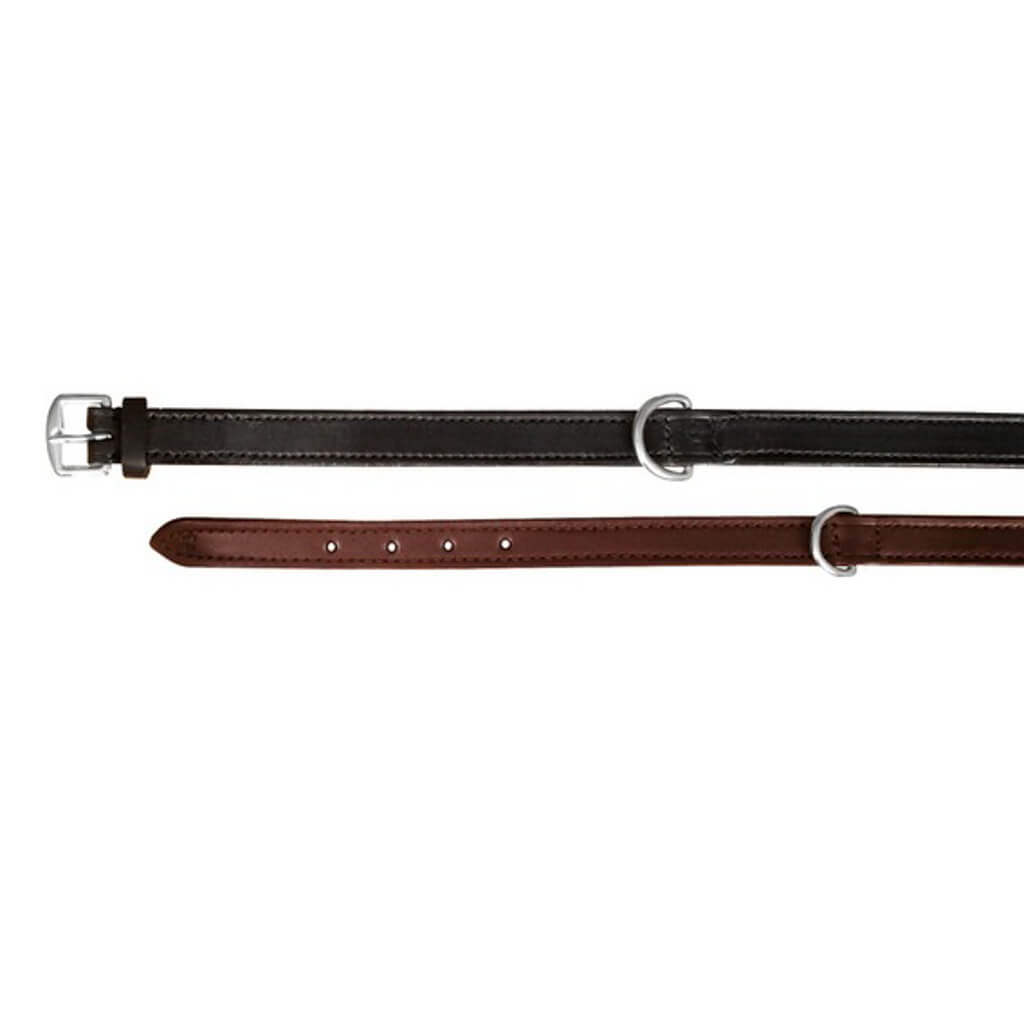 Kraftigt læderhalsbånd som er dobbelt syet for ekstra styrke Halsbåndet kan virke lidt stift, men bliver blødere når det bruges Længde Omkreds Brede vejl. racer 37cm 27-32cm 1,4cm Jack russel/malteser 42cm 31-37cm 1,6cm