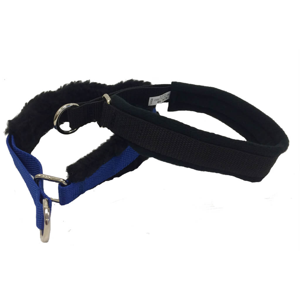 Nome halsbånd Med fleece og halvkvæl God til pelshunde Nemt at tage af og på Blå nylon Kort eller lang fleece Vælg størrelse Nome halsbånd er et blødt og lækkert halsbånd til små hunde. Halsbåndet egner sig godt til pelshunde, da det er nemt at tage af og