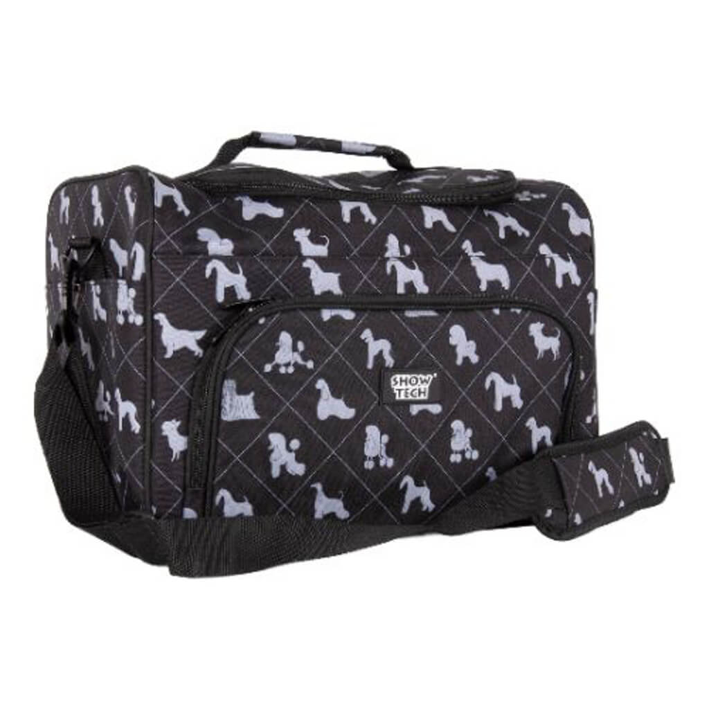 Show Tech Deluxe Grooming Taske Materialet er vand samt pels afvisende Med skulderhåndtag Meget praktisk anlagt Massere af plads til flasker og andet udstyr Åbne lommer på begge ender Smart forrum Tasken rummer et stort rum indeni Fleksibel struktur som