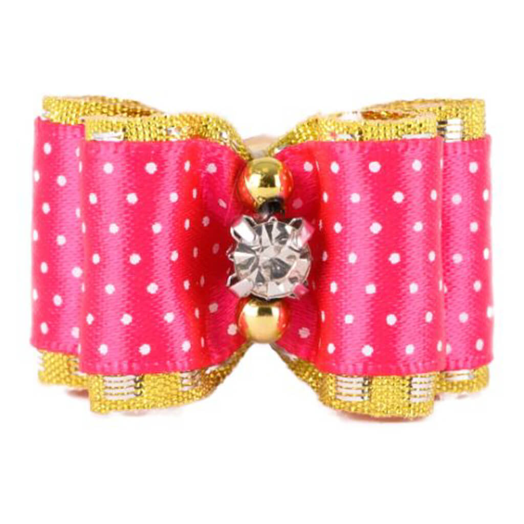 Gør din hund ekstra charmerende med disse søde Polka Dot sløjfer med elastik! De små, farverige sløjfer er perfekte til hunde med langt hår, og prikkerne giver et festligt og