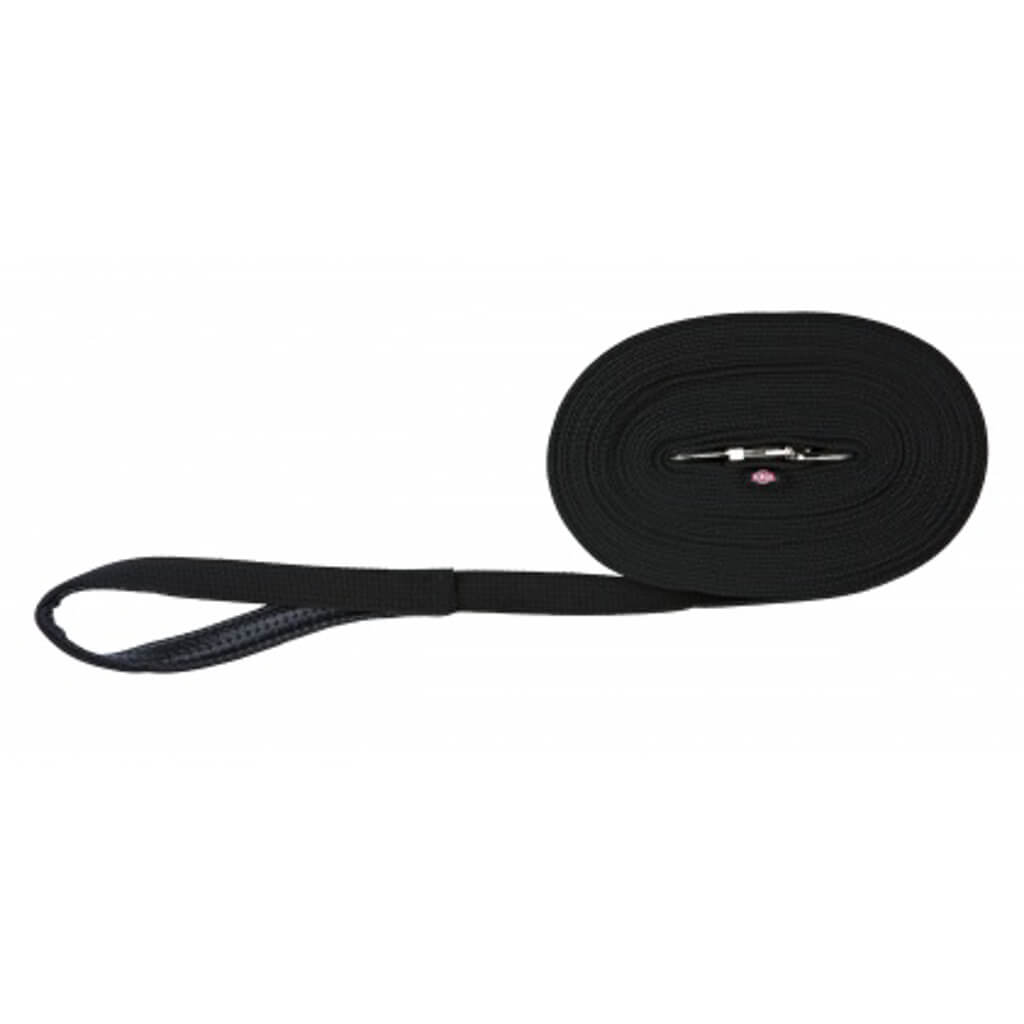 Sporline Højkvalitetsbomuld Polstret håndtag Bred line God til hundetræning og jagt Lang friløbslængde Fåes i flere længder Sporline der er lavet af højkvalitets bomuld. Linen har et polstret håndtag og bred line så det giver et godt greb. Ideel til hunde