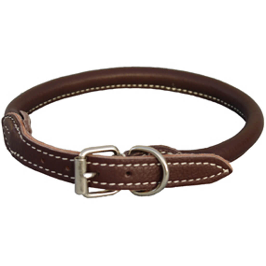 Lækker rundsyet læderhalsbånd lavet af okseskind Læderet er dejlig blødt for hunden at have på Det rundsyet læder er godt for både kort og langhårede hunde på de langhårede hunde der vil det rundsyet læder filtre pelsen mindre en tilsvarende halsbån